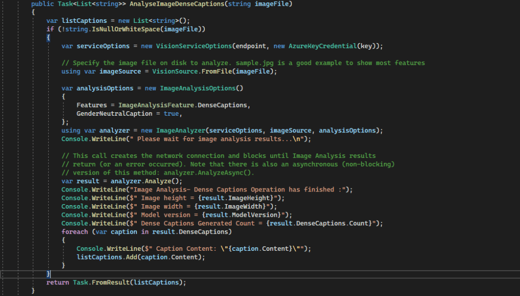 This is a similar concept to the article Azure AI Vision – Image Analysis – Generating a Single Image Caption in Optimizely CMS where I demonstrated the ability to generate a single image caption. In this article, I will explain how the image caption feature can be used to generate a list of image captions associated to the image.